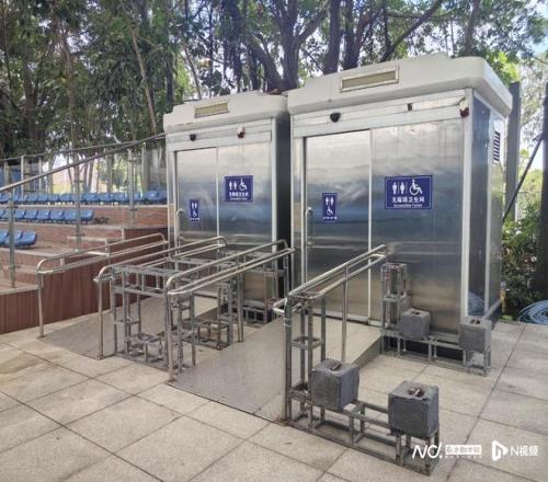 横琴国际网球中心增设的临时无障碍卫生间。