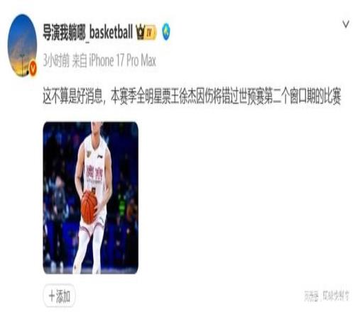 距离男篮世预赛开打还剩下不到4天的时间,中国队目前已经进入到最后的备战状态。由于郭士强这一次极为重视,全程采取封闭式秘密集训。截止到目前,中国队12人大名单也暂时还没有确定,而且,一同集训的21人大名单,暂时也没有曝出过球员离队的消息。不过,对于中国男篮而言,在世预赛临近之际,却爆出一大不利消息,广东队核心后卫徐杰将因伤缺席世预赛,这对于中国队而言,确实是一个不小的打击。冲击世预赛两连胜恐怕悬了。