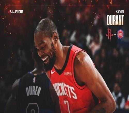 出场时间终于减少了!火箭在这场大胜中只让杜兰特出场34分多钟 -