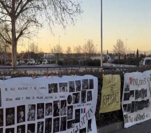 皇马球迷拉横幅声援维尼修斯和姆巴佩:我们深爱你们 -