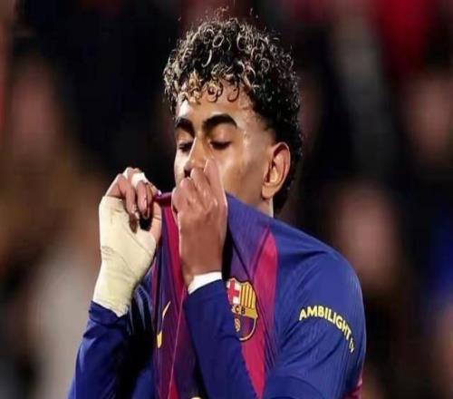可惜啊!奥尔莫禁区内造点,亚马尔主罚点球打在立柱上 -