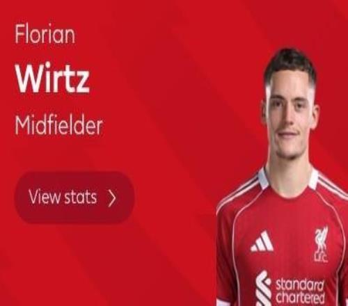 打入一球,维尔茨当选富勒姆vs利物浦全场最佳球员