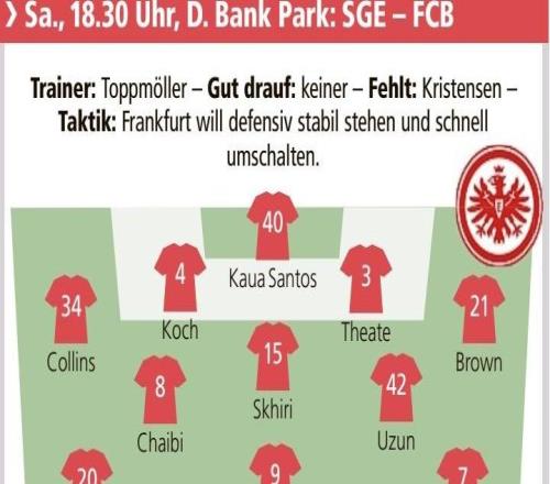 德媒预测法兰克福vs拜仁首发:凯恩领衔,乌尊在列